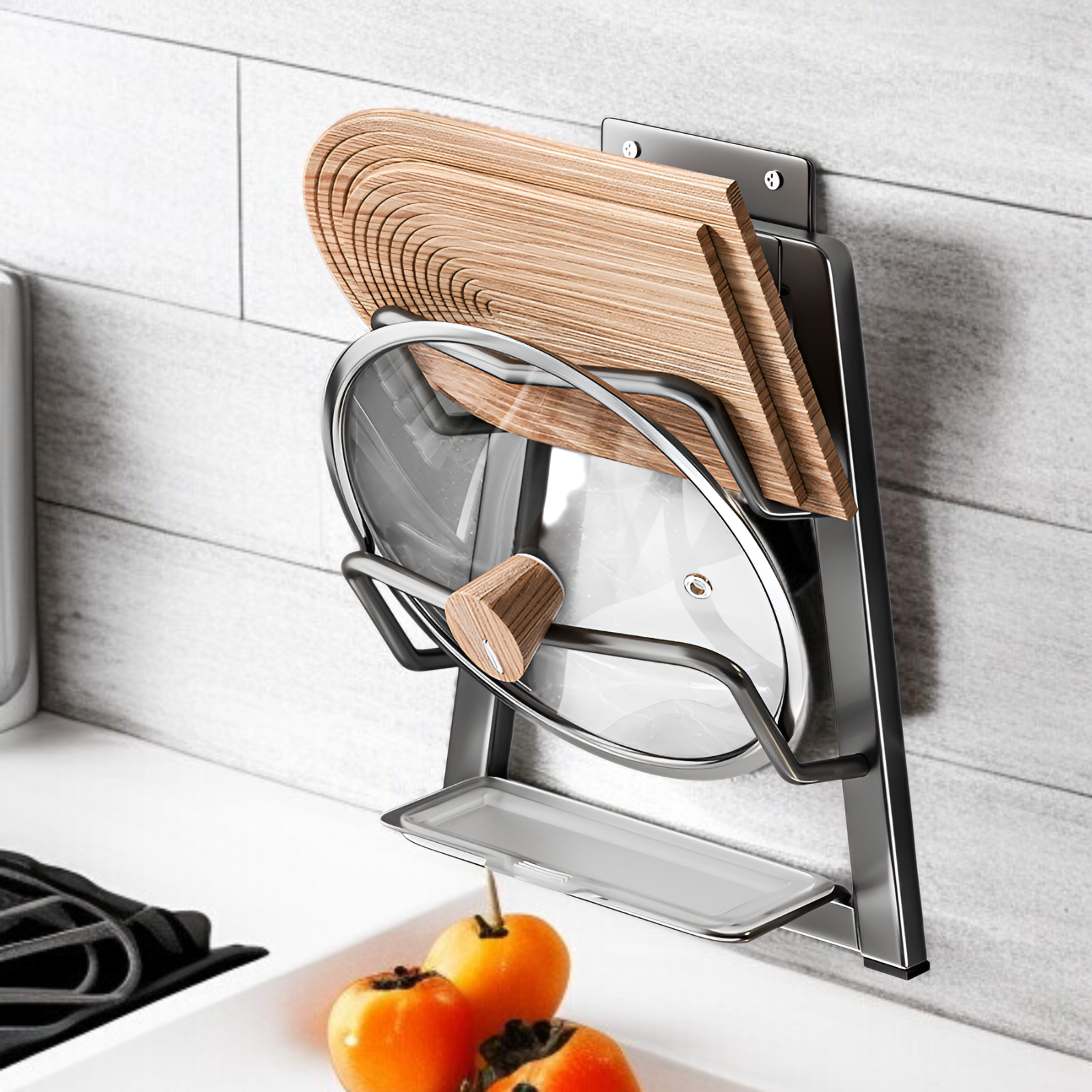 立て型鍋蓋&調理器具ラック、スペース節約収納スタンド